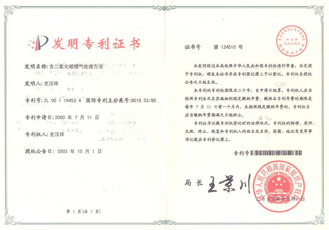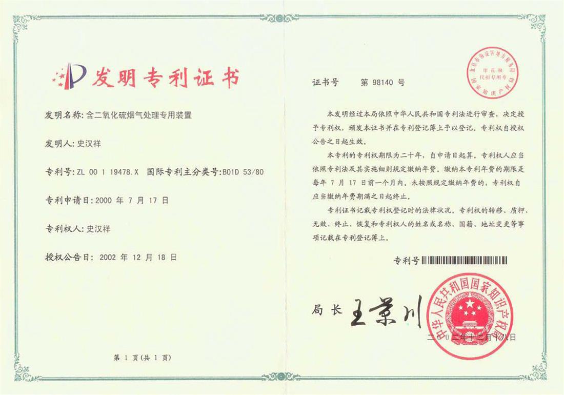 含二氧化硫煙氣處理專用裝置ZL00119478.X