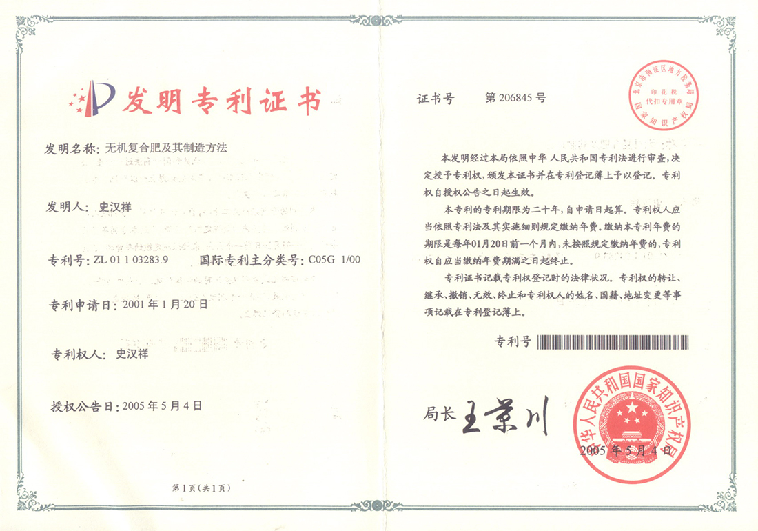 無機復(fù)合肥料及其制造方法ZL01103283.9